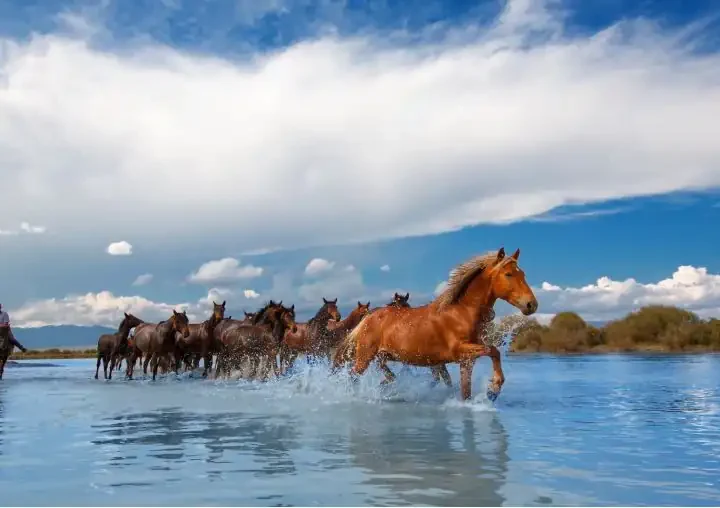 Guests will visit ancient pasture of Wusun tribe. Snow mountain , grassland and